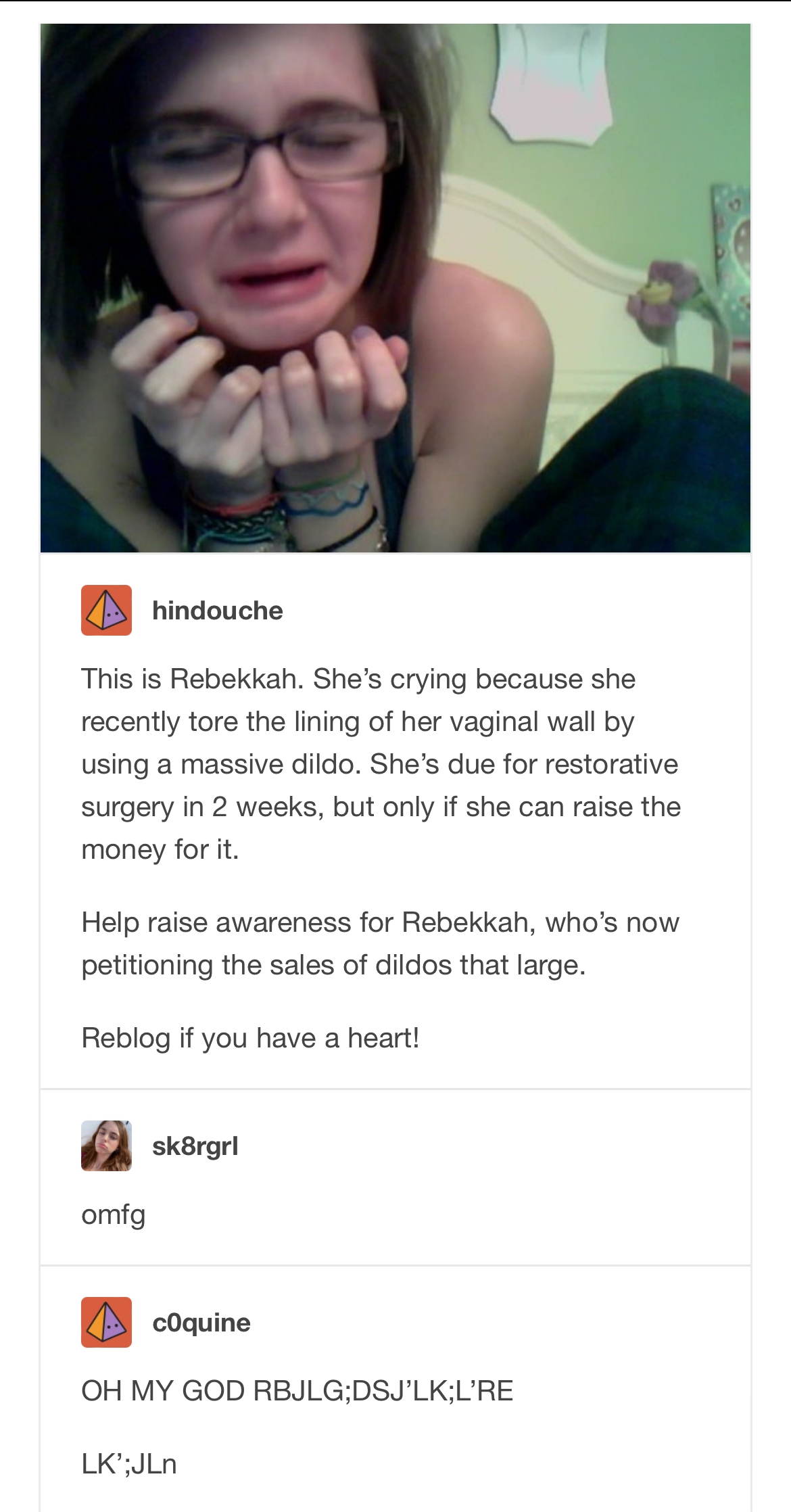{{{"Also went by itsrebekkah and rebrocks, has videos out there if anyone can share" | renderPostMessage 360}}}