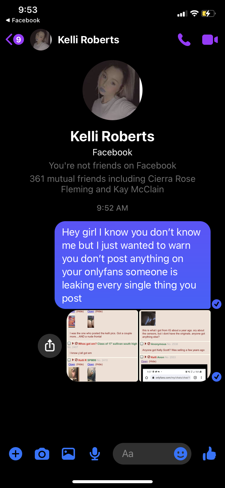 {{{"agreeing with the anon above, Kelli, and any of her friends, shut the fuck up please. If you truly think that just because OF or any other site makes it against their terms of service to screenshot or save content that its just magically safe from that then you really are a disgrace to our species in our current age of technology. When things are uploaded to the internet, or even shared in private message, theryre basically there forever. ever heard of the fappening? That was nudes leaked from private icloud accounts. Youre uploading shit for anyone with a few bucks on a debit card to see. If you didnt want it out there, dont post it." | renderPostMessage 4132}}} |