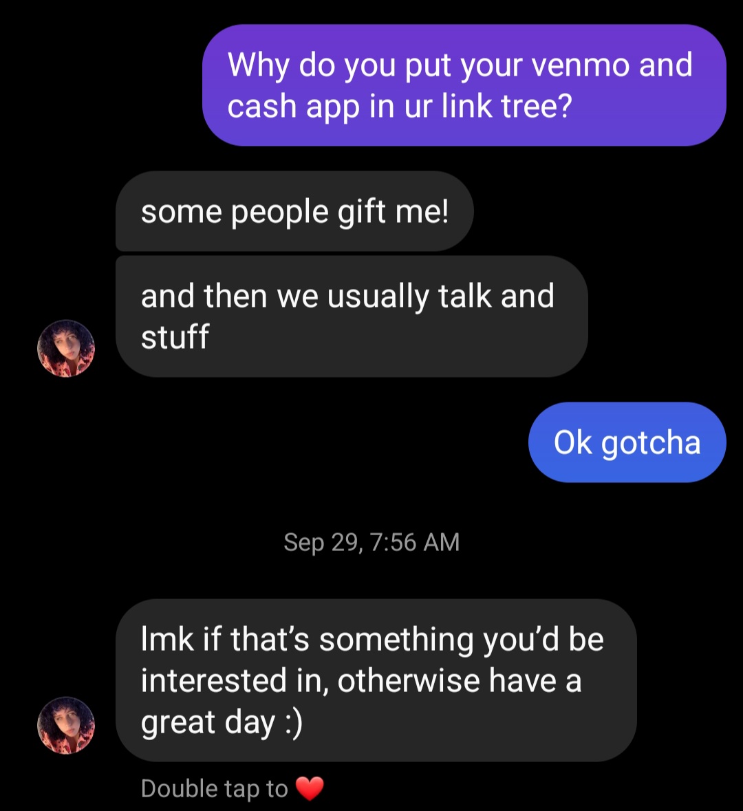 {{{"Dmed her on insta to see what would happen. Didn't mention vids yet" | renderPostMessage 18236}}}